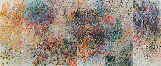Acrylic on polyester, 69” x 147”, 175.25 x 373.25 cm..