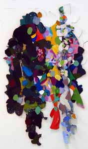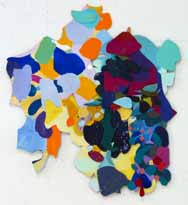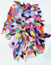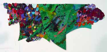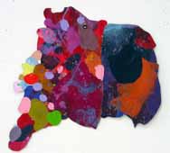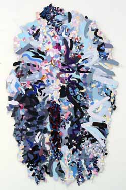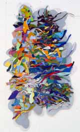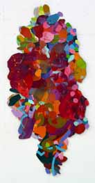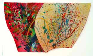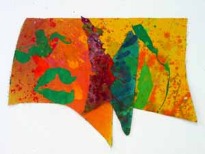 These pieces are made of acrylic on canvas with some paper collaged onto the canvas. The is cut and stitched and glued with acrylic medium.