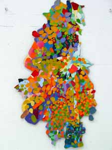 Acrylic and paper on canvas, 58 x 68 inches, 147 x 170 cm.