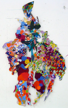 Acrylic on paper collage on Polyester, 21.25 x 18.5”, 54 x 47 cm.