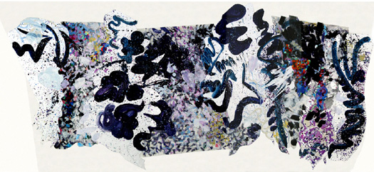 acrylic and paper on canvas, 48 x 77”, 122 x 200 cm.