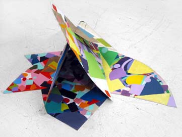 This book is a cross between a book with hinged leafs and a paper sculpture. As the
