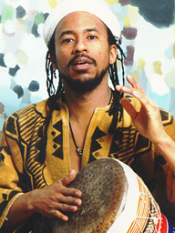 Bakr's musical education was essentially in the traditions of the master and student. He studied with Baba Feami Akinlana on conga, and Chief Bey on shekere. In 1984 he did an apprenticeship with Nana Vasconcelos to study the berimbau and body percussion. Hasan's most recent concentration has been the timbales with the legendary Little Ray Romero. Over the past five years Hasan has nurtured and molded a dynamic and unique vocal ability which is apparent in the recently published video tape of the Kinetic Painting Group.
