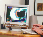 The Kinetic Painting Group improvises animated computer painting with sound. The moving abstraction is projected onto a theater-size screen while the painter plays the keyboard which creates the painting. Musicians react to the visual signal as the painter reacts to the sounds. Each work is an improvisational jamming of sound and image. The interaction is spontaneous and free within a chosen theme.