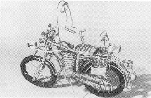 In Kari's work below and in the African toys, it is the matterials that are assembled. The subject is simple. It is an insect or an airplane or a motorcycle. But the parts have been collected and slowly assembled. In Kari's work, the idea of an insect emerges as the parts are being assembled,