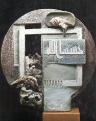 In the first phase of the project, materials are collected. In the second phase parts are built without regard for the end product. When the student artists judges that enough parts have been created then the third phase begins -- a period of trial and error in assembling the parts into a new whole. The second and third steps will merge. As soon as you begin to assemple parts, new ideas grow. These new ideas lead to the making of new parts. You should begin to experience a natural cycle of development. How parts are fit together and what shape the final whole will have should grow from this process of work.