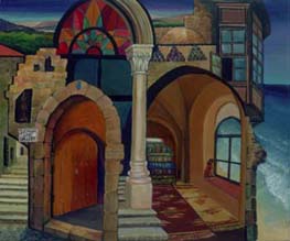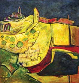 41. Khalil Rayan, "Al Quds at Night," 1988. Oil on canvas, 102 x 107 cm.