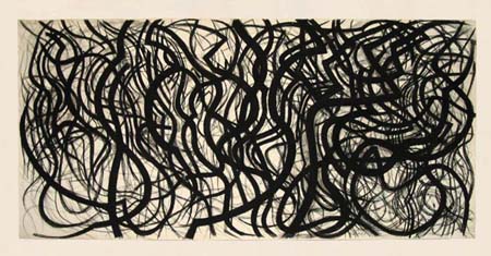 52. Samia A. Halaby, "Calligraphic Dance," 1984. Charcoal on paper, 50 x 104"