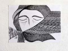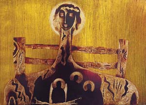 61. Muhamad Al Wahibi, "Madonna of Al Khalil," 1995. Scratch board, 63 x 88 cm.