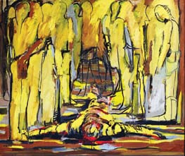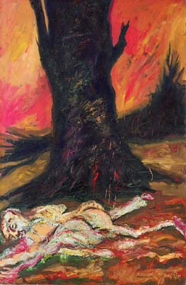 46. Osama Said, "Remains of Massacre," 1991. Oil on canvas, 145 x 97 cm.