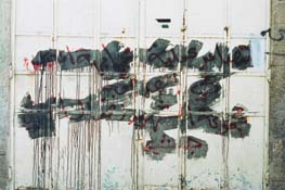 Graffiti on a closed shop inside the old city walls of Al Quds, 1995.