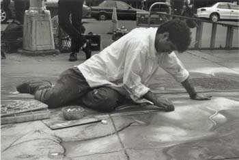 Hani Shihada drawing on the sidewalks of New York, 1995.