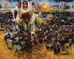 47. Ismail Shammout, "Life Prevails," 1999. Laser print on canvas, 68.5 x 84.5 cm.
