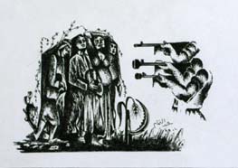 42. Abdul Tamam, "Harvest Them," 1999. Ink on paper, 21 x 30 cm.