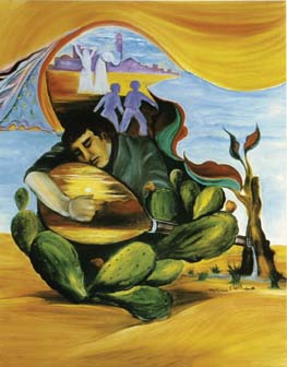 48. Tamam Al Akhal, "Scent of Return," 1994. Oil on canvas, 80 x 100 cm.