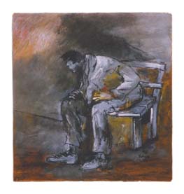 60. Adnaan Yahya, "Thinking, A Sudden Moment," 1986. Acrylic on wood, 25 x 25 cm.