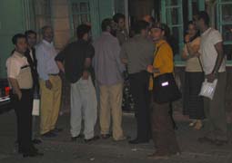 Thus it was that my teaching concerning creativity in art was being conducted among townspeople suffering the severe effects of a merciless siege. Palestinians are resisting this Israeli terrorism by trying to continue conducting life as fully as possible. The intention of my teaching was to encourage self-reliance in artistic decision making, to encourage intuitiveness, and to encourage innovation in the selection of art materials. The project was posted in advance on the web. The advance response to my posting was very moving and indicative of the devastation of the siege. The organizers in BeitLahem begged me to post illustrative pictures as they did not have sufficient library material for the students to understand the context of the project. Please read the Project for BeitLahem and associated Project Pictures I and Project Pictures II which I posted in response. Below is the amazing group of Palestinians going to dinner together to toast our collaboration. They treated me to the specialties of Abu Shanab restaurant. I am proud of their heroic Soumoud and both honored by and grateful for their beautiful hospitality.