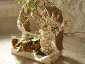 Ramaz Al Araje teaches art at Terra Santa and Freres schools. Ramaz created several assemblage sculptures. The most powerful was the one where extremely fragile things are nested in extremely hard things. Stones and eggs in combination are so unexpected that one immediately feels the metaphoric allusion to the fragile condition of Palestinians under Israeli military terror. At the same time there is a palpable reaction to the work in our urge to protect what is fragile. This work and several other he made are unusual within the context of his work. Clearly, he put his trust in learning something outside his habits and created wonderful beginnings.