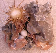 Ramaz Al Araje, "Mixed life: Solid, Living, and Dead" 2003. Stones, egg, and weeds, 40 x 25 x 20 cm.