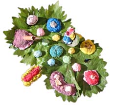 Rawan Gedeon, 15 years, was also very busy preparing a video installation for the same exhibition as Ali. And indeed, her video memorializing her brother was incredibly mature and powerful. The work she did for our project was a papier mache assemblage with grapevine leaves. The sweet tenderness of the work presented in the picture above is wonderful.